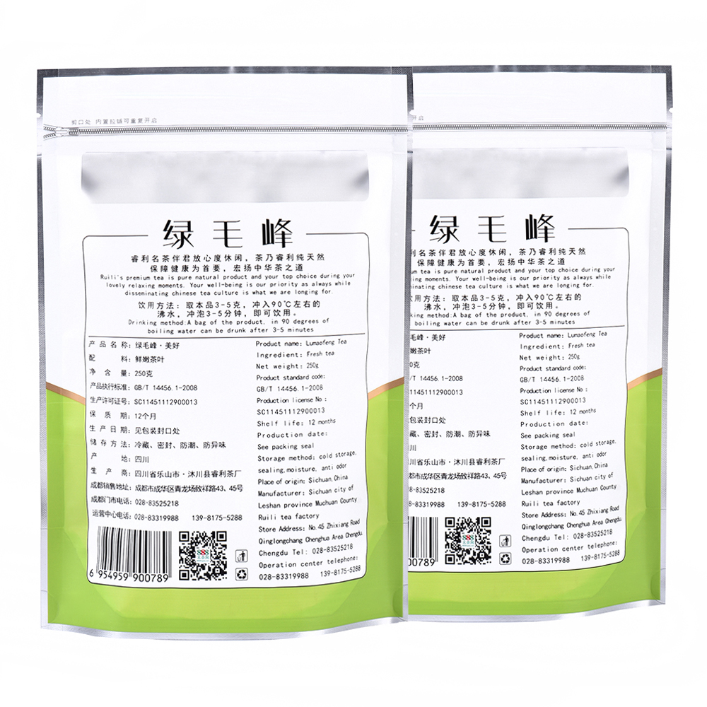 888名茶网-美好系绿毛峰,食品级自封自立专用包装袋,内置拉链,拉链可重复使用,防潮、防异味,净含量2×250g。