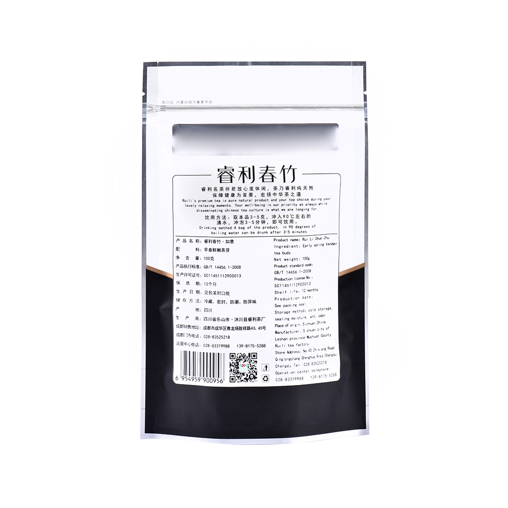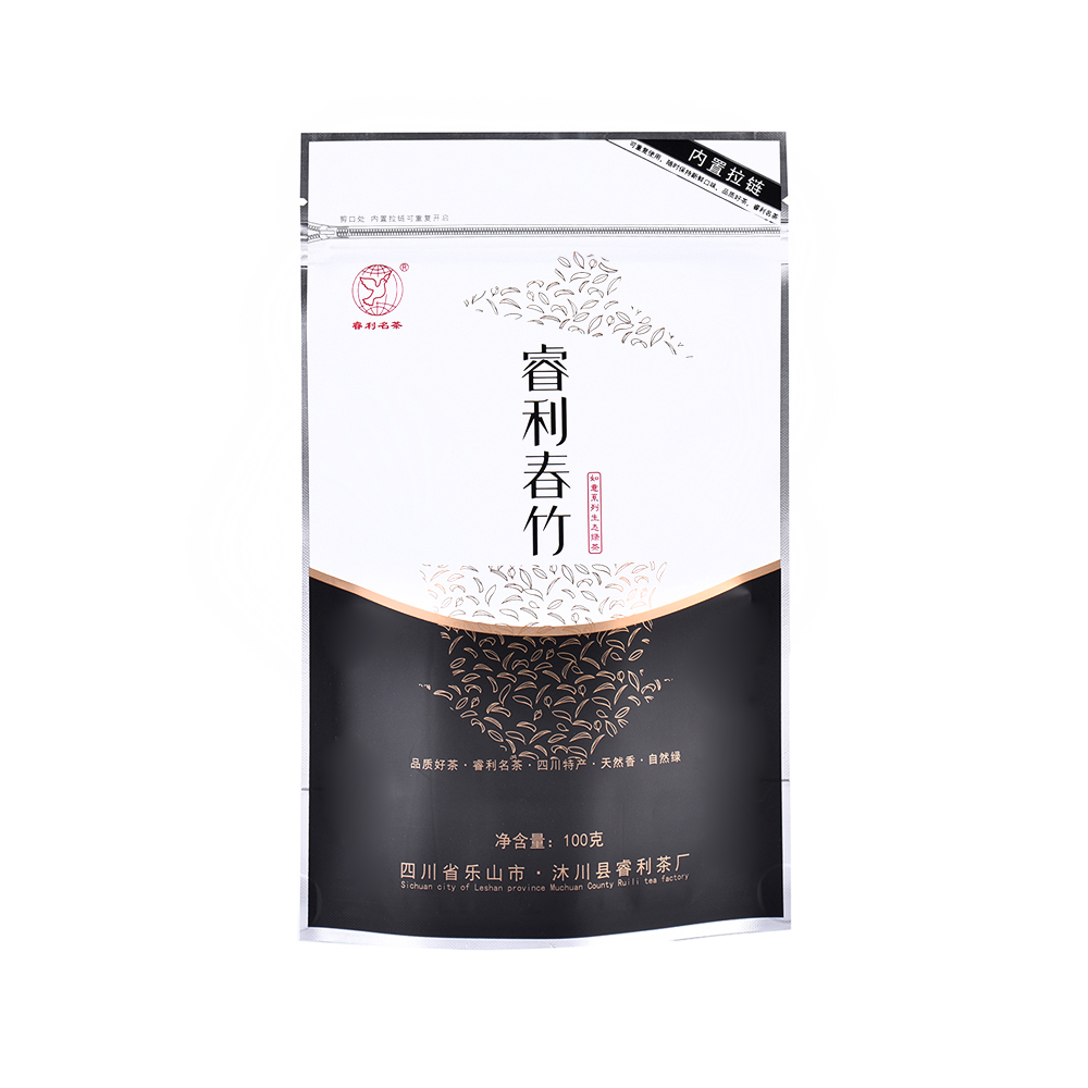 888名茶网-如意系列睿利春竹早春明前高山生态绿茶,食品级自封自立专用包装袋,内置拉链,拉链可重复使用,防潮、防异味,净含量100g。