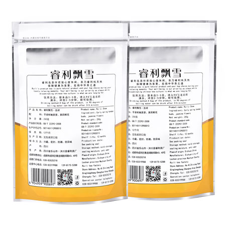 睿利飘雪 早春明前高山生态茶叶 三伏天品质茉莉花 醇香浓郁 自封自立袋2×250克 吉祥系列