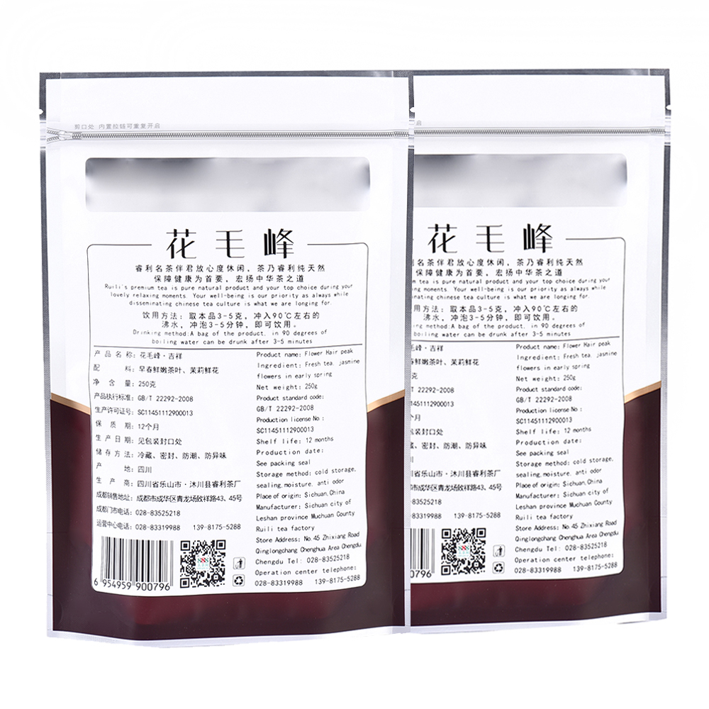 888名茶网-吉祥系花毛峰,食品级自封自立专用包装袋,内置拉链,拉链可重复使用,防潮、防异味,净含量2×250g。