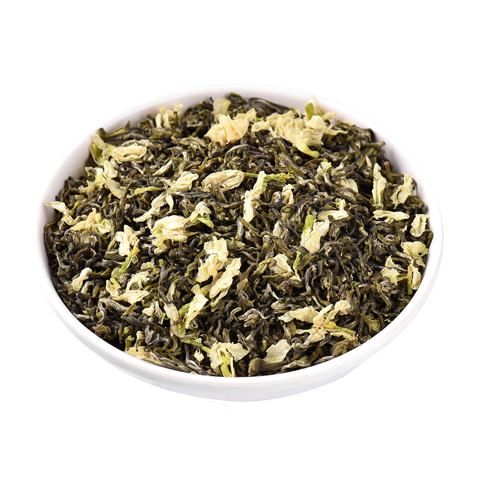 888名茶网—如意系睿利飘雪茉莉花茶,取明前早春高山生态茶叶与三伏天品质茉莉花,形态卷曲有致,劲道感十足,花瓣干洁完整。