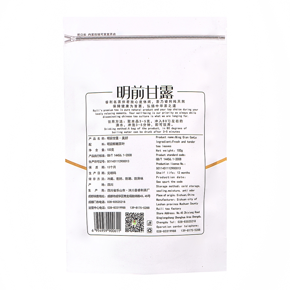 首页 > 明前甘露 >2024明前春茶明前甘露自封自立袋100克 美好系列