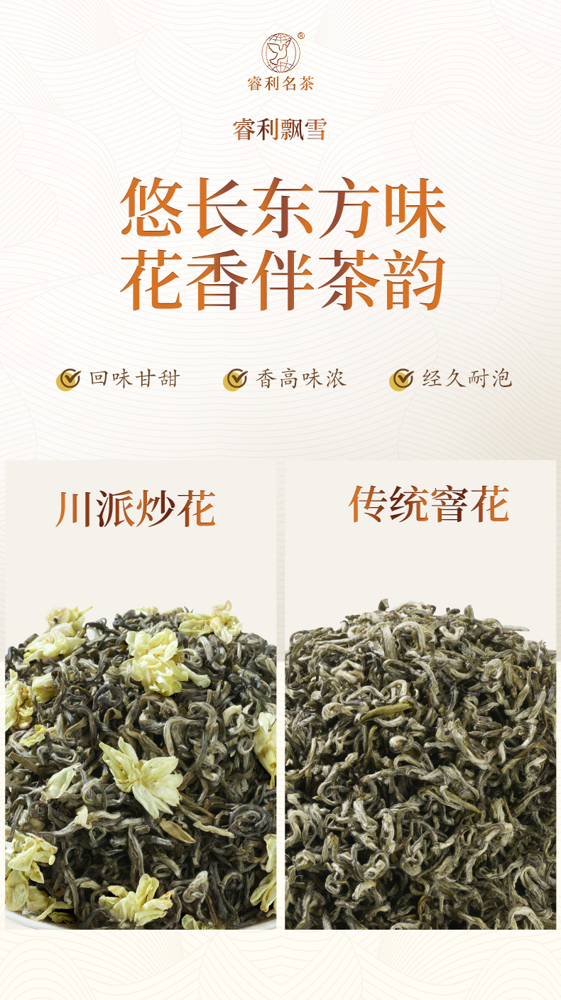 飘雪 茉莉花茶 浓香嫩芽回甘 川派炒花(有花)传统窨花(无花)均有