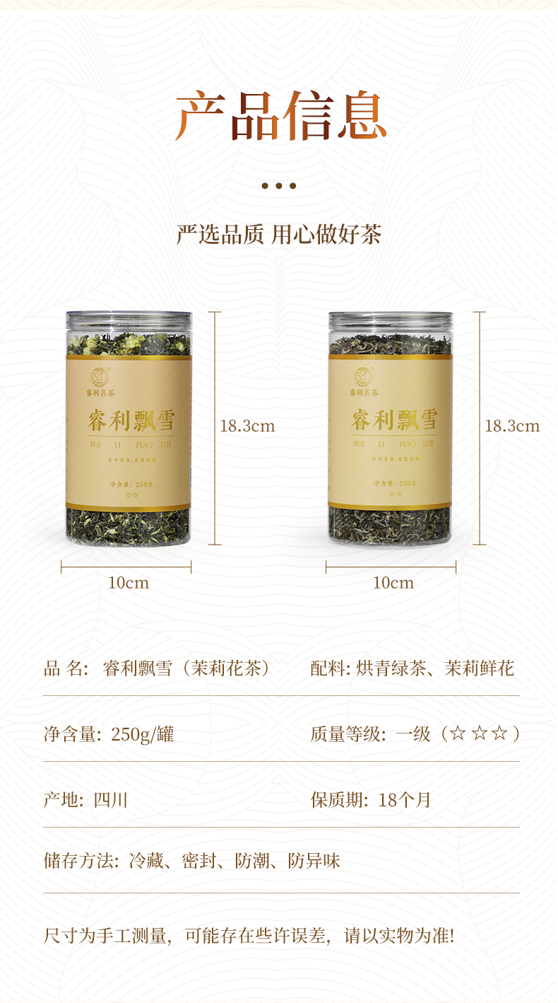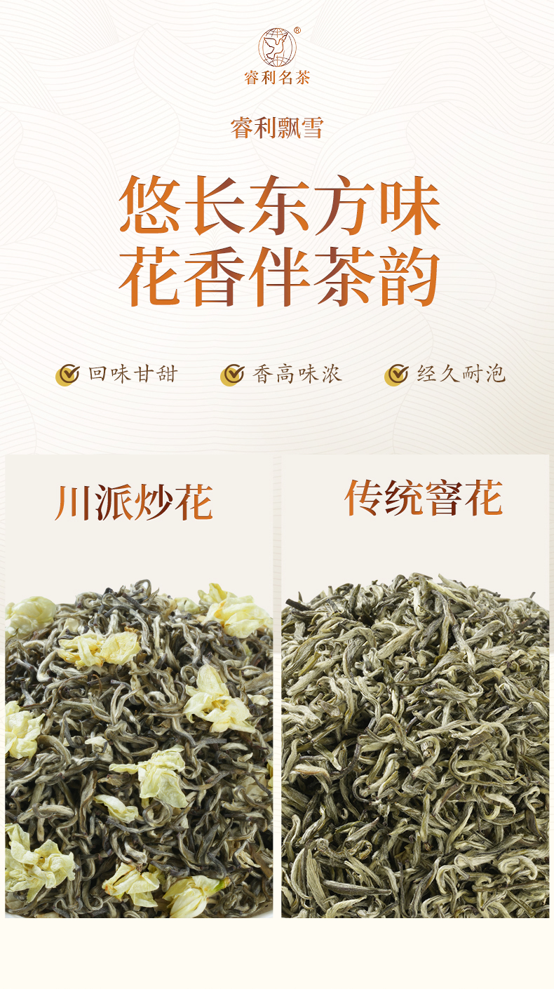 飘雪 茉莉花茶 浓香高货全芽 川派炒花(有花)传统窨花(无花)均有