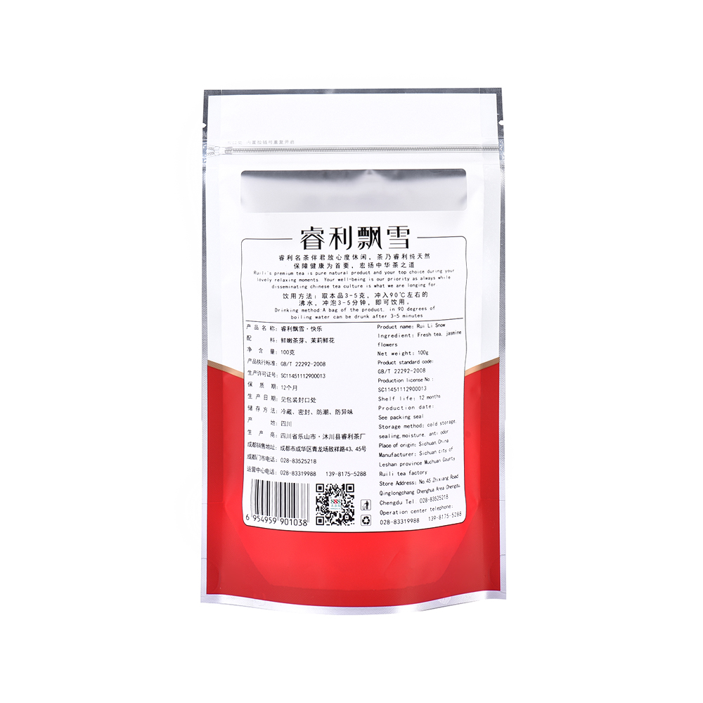 首页 > 飘雪 >睿利飘雪 高山茶叶 三伏天品质茉莉花 醇香浓郁 自封自立袋100克 快乐系列