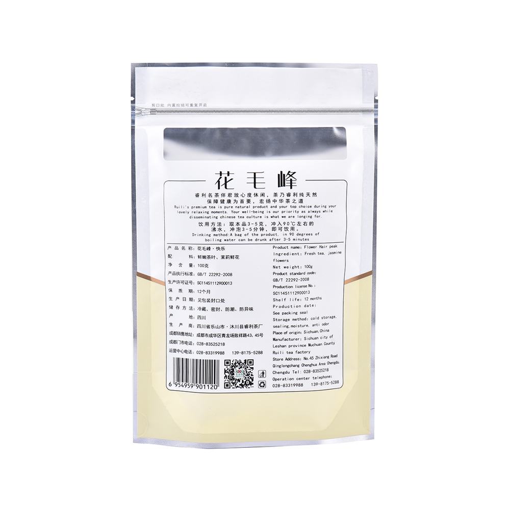 888名茶网-快乐系花毛峰,食品级自封自立专用包装袋,内置拉链,拉链可重复使用,防潮、防异味,净含量100g。